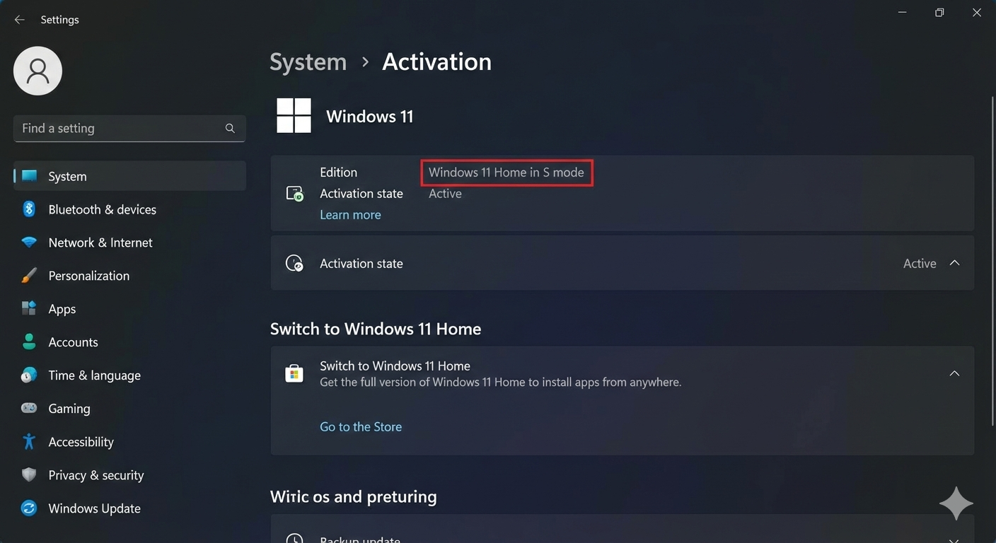 - Look for a section titled Switch to Windows 11 Home (or Pro).