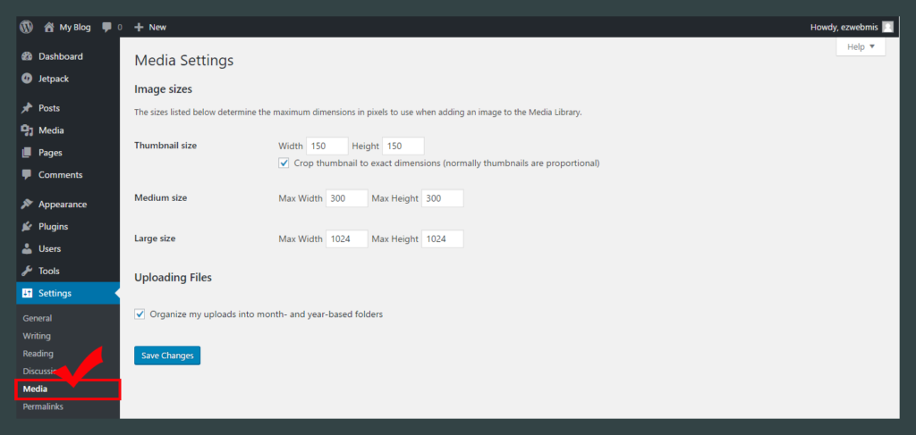 *관리자 사이트로 로그인 후 Settings > Media를 클릭하세요.